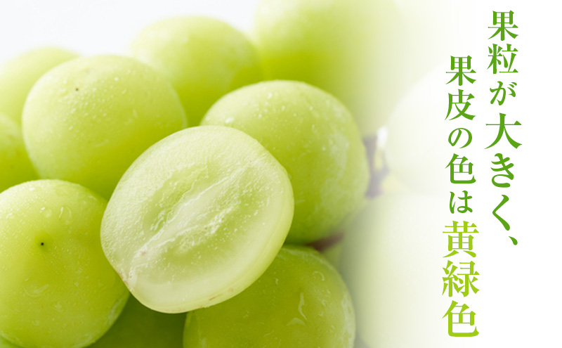 シャインマスカットは果粒が大きく、果皮の色は黄緑色で厚みは薄く、果肉と密着しているため手で剥ぐことは難しいです。しかし、薄いため皮ごと果肉と一緒に食べることができるというのが大きな特徴の一つです。一般的には皮ごと食べられるという特徴を最大限に活かすため、種無しにされています。