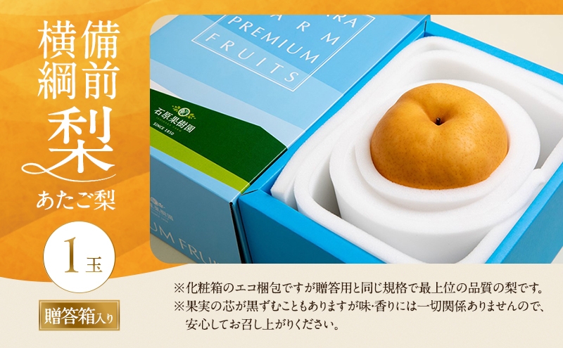 [№5615-0443]梨 2026年 備前横綱梨(あたご梨) 1玉 (1~1.4kg) 贈答箱 【11月下旬~12月中旬頃発送】 ナシ なし 岡山県産 国産 フルーツ 果物 ギフト 石原果樹園 繊細な味 ジャンボ梨