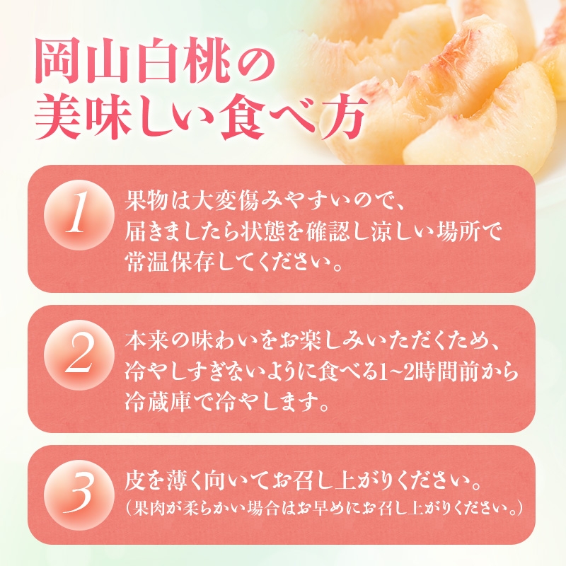 桃が大好きな方へおすすめ!岡山白桃を3回にわけて発送いたします。