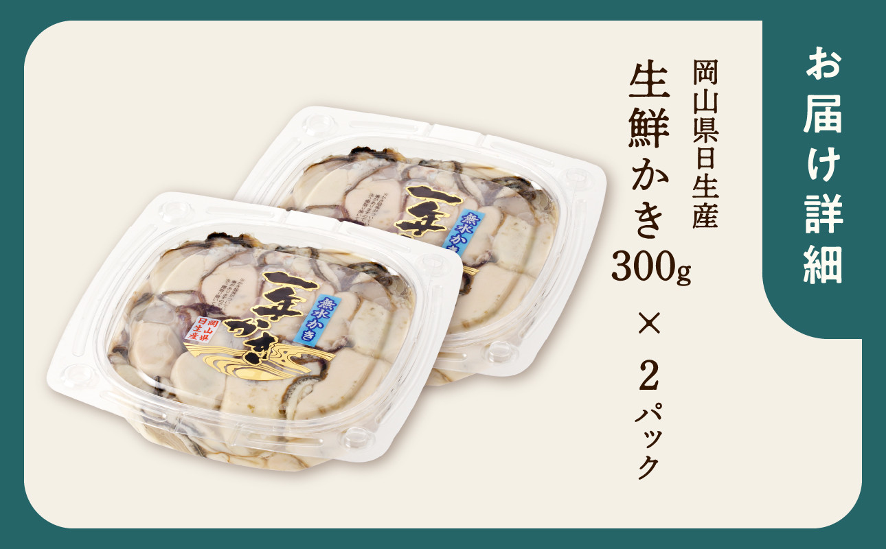 | 容量 | ■内容量 岡山県日生産生鮮かき(むき身)加熱用 600g (300g×2パック) |