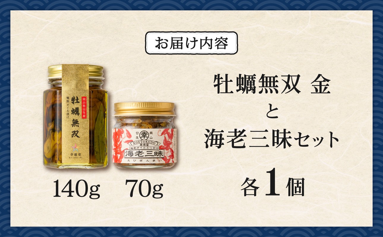 | 容量 | 牡蠣無双(金)140g×1 海老三昧70g×1 |