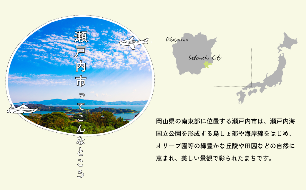 瀬戸内市は、総面積125.45平方キロメートルで岡山県の東南部に位置し
