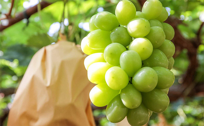 大粒で種なし、皮ごとそのまま食べられます。外はパリッと中身はとっても甘いシャインマスカットをどうぞ。