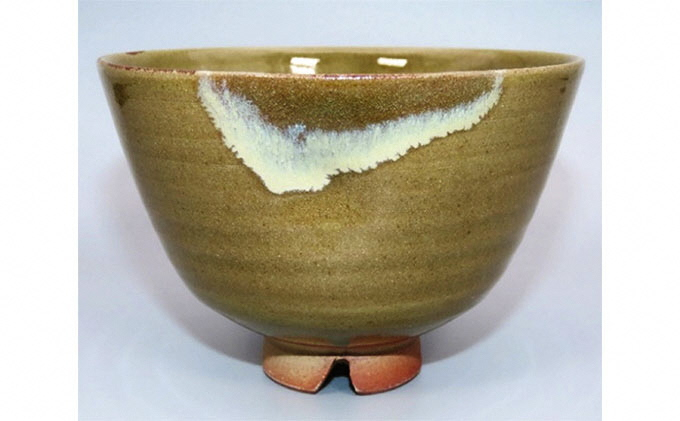 虫明焼 灰釉前押し茶碗 若草色(黒井博史 作) [№5735-1368]