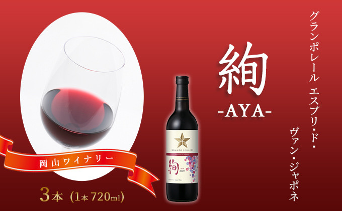 ワイン グランポレール エスプリ・ド・ヴァン・ジャポネ 絢 -AYA- 3本(1本 720ml)赤ワイン ライトボディ サッポロビール 岡山ワイナリー