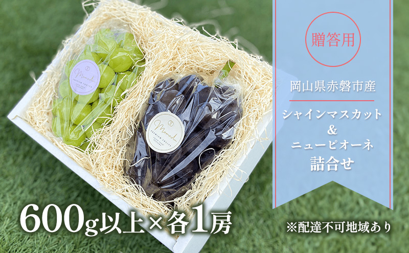 ぶどう 2026年 先行予約 贈答用 シャインマスカット & ニューピオーネ 詰合せ 600g以上×各1房 ブドウ 葡萄 岡山県 赤磐市産 フルーツ 果物 ギフト