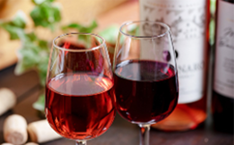 赤ワインはマスカットベーリーAを使い、軽やかでありながら芳醇な果実の味わいが楽しめる、柔らかな酸味と優しいの渋みが特徴のライトボディ。