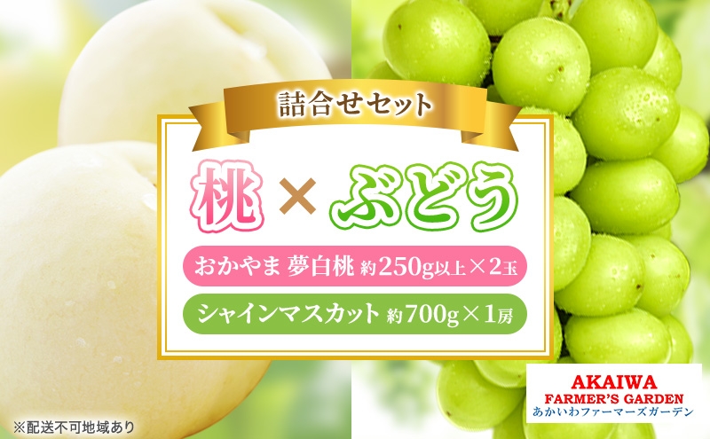 桃 ぶどう 詰合せ 2026年 先行予約 おかやま 夢 白桃 2玉(1玉250g以上) シャイン マスカット 1房 約700g 岡山県 赤磐市産 フルーツ 果物 あかいわファーマーズガーデン