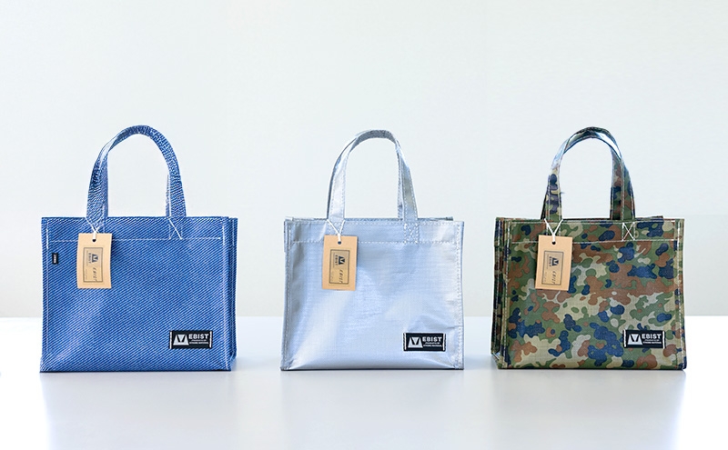 産業資材として使われているカバー、シート等の端材を再利用して、世界にひとつだけのサスティナブルなバックを作りました。