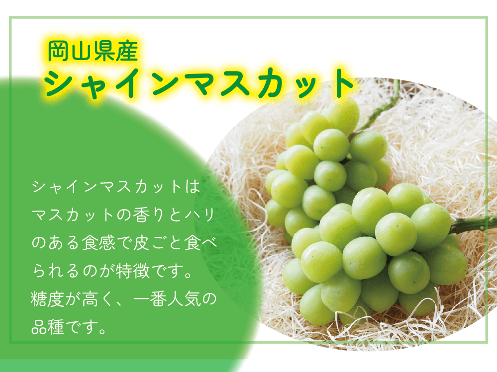 ▶『晴れの国岡山』から〈安心・安全〉〈おいしい〉〈新鮮〉なぶどうをお届けします。