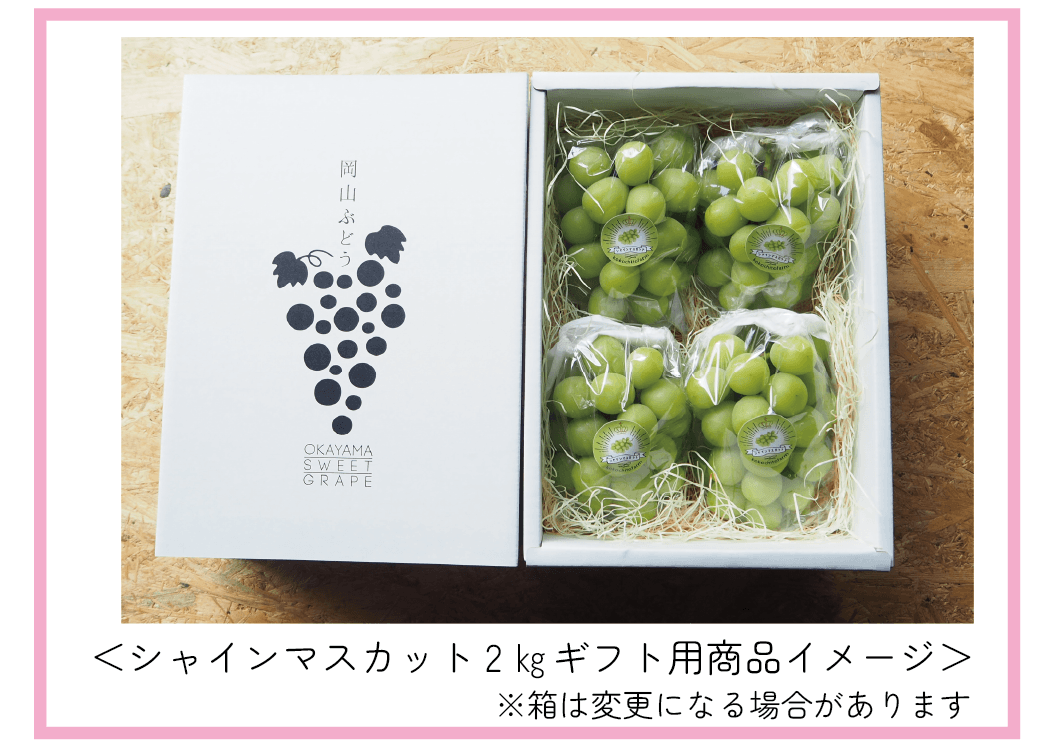 | 容量 | 真庭市産 シャインマスカット 特選品 3~4房 2.3kg以上 |