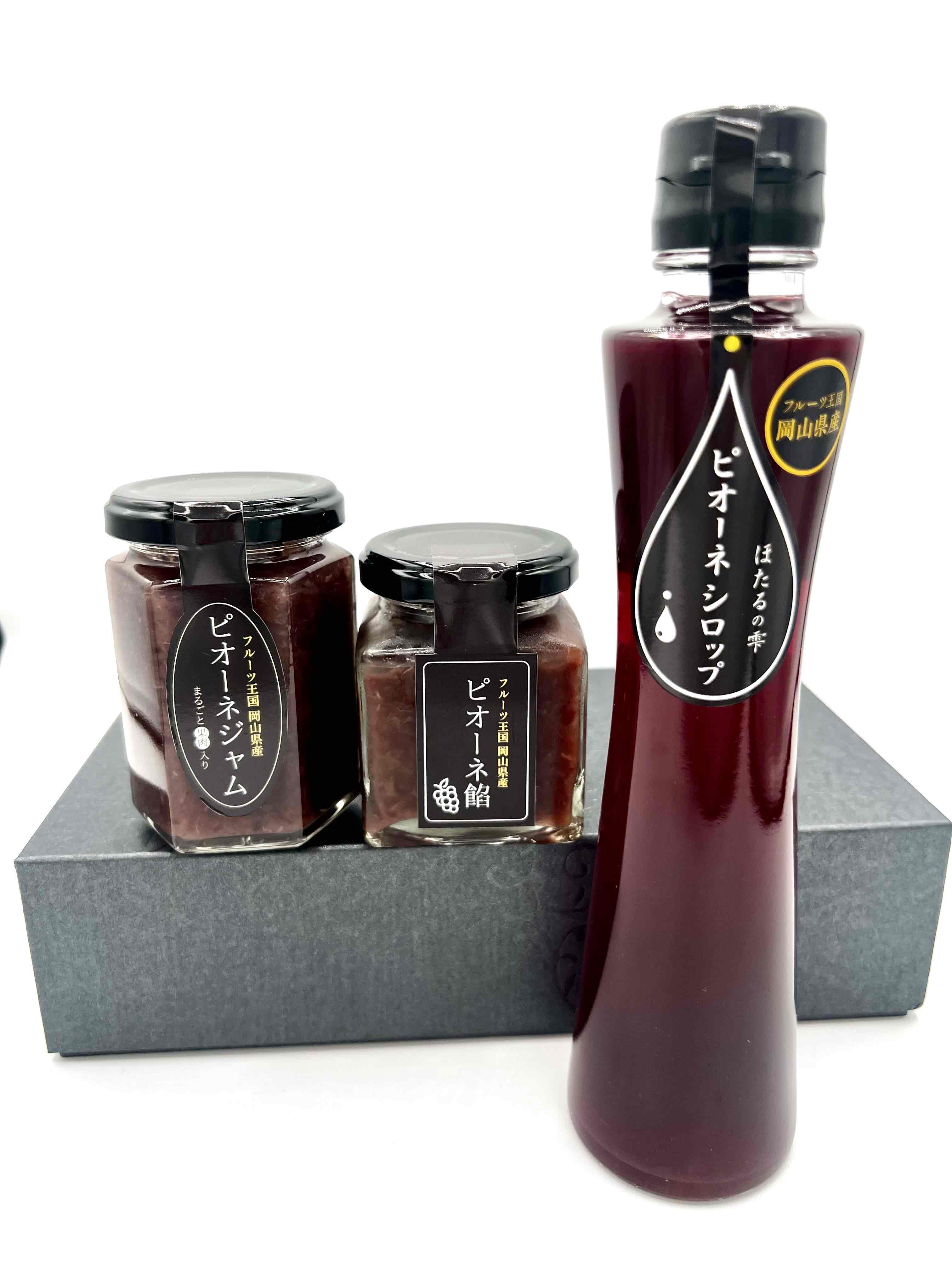 | 容量 | ピオーネシロップ 240ml ピオーネジャム150g ピオーネ 餡子150g |
