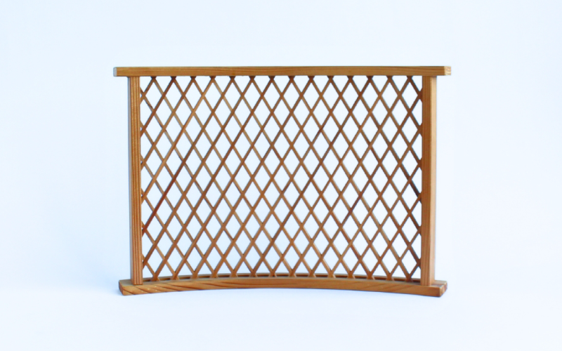 斜め格子柄にデザインされた美術組子「飾り盆(組子トレー)」です。