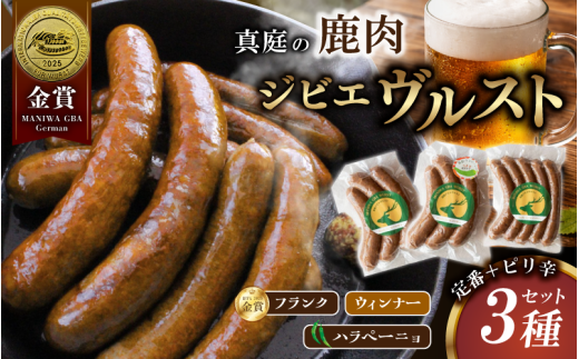 NEW 鹿肉ソーセージ 定番+ピリ辛3種セット IFFA金賞受賞フランクフ…