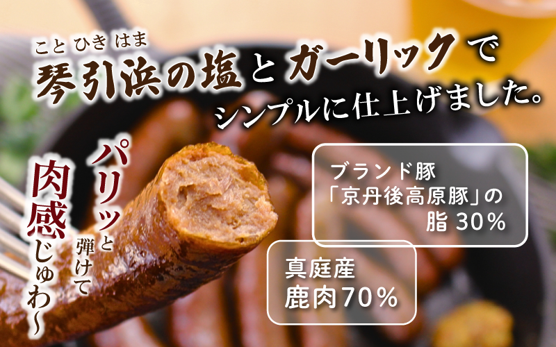 真庭産の鹿肉を70%使用し、脂には農林水産大臣賞を受賞したブランド豚「京丹後高原豚」を30%配合しました。