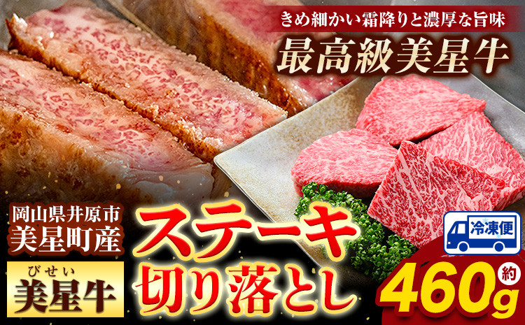 きめ細かい霜降りと濃厚な旨味 牛肉 ステーキ 切り落とし 美星牛 約460g入り 美星ミート《30日以内に発送予定(土日祝除く)》 牛肉 岡山県 浅口市 肉 和牛 国産 牛肉 ステーキ切り落とし 美星和牛 厳選 霜降り 冷凍 送料無料