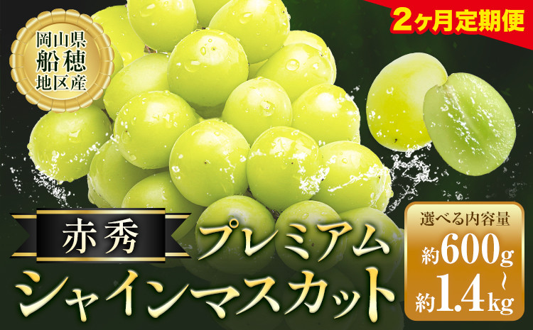 パリッとした食感とみずみずしい果汁が格別の 赤秀プレミアムシャインマスカット 【2ヶ月定期便】ぶどう シャインマスカット 赤秀 プレミアム 晴王 選べる 600g 700g 1.2kg 1.4kg 1房 2房 マスカット岡山《2026年9月上旬-10月末頃出荷》岡山県 浅口市 送料無料 フルーツ 果物 マスカット お取り寄せフルーツ【配送不可地域あり】 st-p