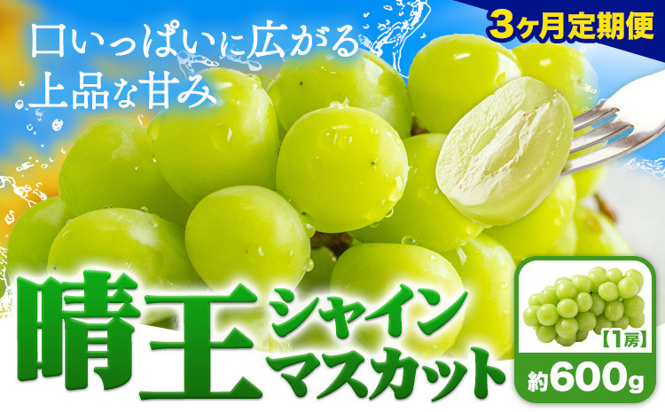 口いっぱい広がる上品な甘み 【3ヶ月定期便】ぶどう シャインマスカット 晴王 600g 1房 マスカット岡山《2026年7月上旬-9月末頃出荷》岡山県 浅口市 送料無料 フルーツ 果物 マスカット お取り寄せフルーツ【配送不可地域あり】 st-p