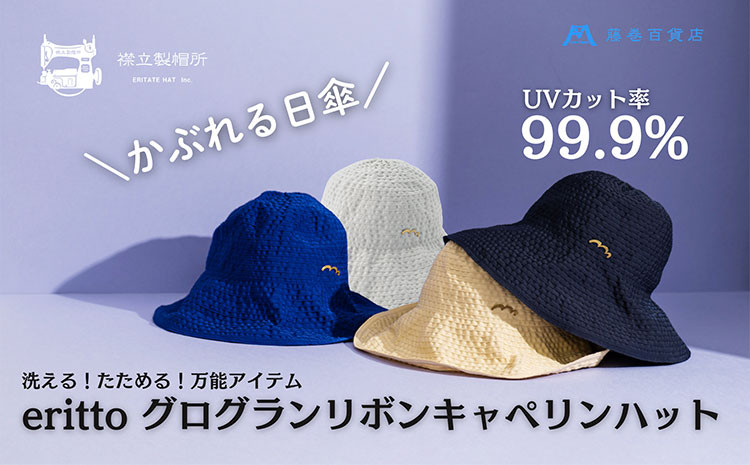 洗える・たためる・UVカット。年中かぶれるエレガントなハット。 帽子 藤巻百貨店×襟立製帽所 erittoグログランリボンキャペリンハット 1個 藤巻別注モデル 選べるカラー ブルー アイスグレー ベージュ ネイビー サイズ調整機能付 56.5~58cm 株式会社caramo《60日以内に出荷予定(土日祝除く)》岡山県 浅口市 帽子 送料無料