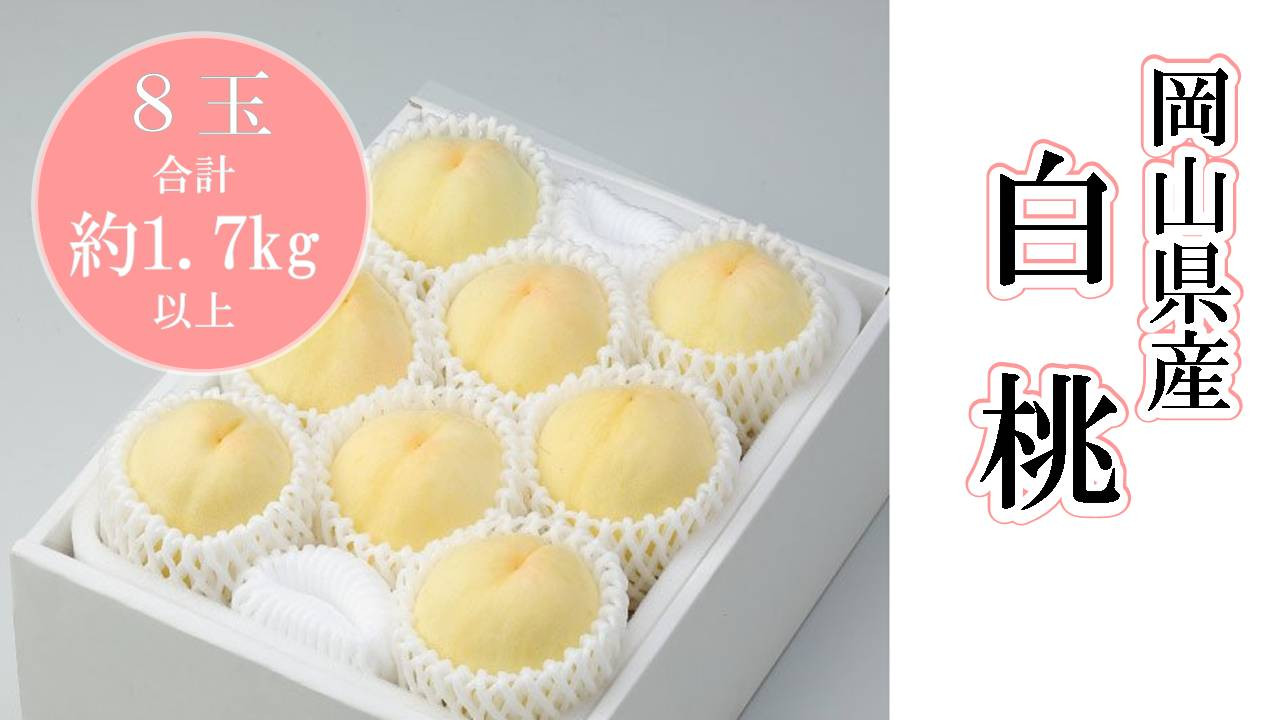 芳醇な香りと繊細で上質な甘み。伝統のある岡山県の白桃。 岡山県産 白桃8玉(合計 1.7kg 以上)(ハックルベリーフィン)// 関連するキーワード 岡山の白桃 ロイヤル 岡山 人気 岡山ロイヤル 清水白桃他