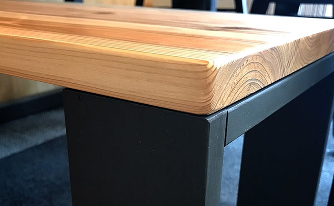天板は丁寧に磨いた後、オイル塗装。無公害の自然塗料である蜜蝋ワックスで仕上げています。木の温もりを残しつつ、水や汚れに強いです!