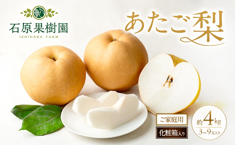 梨 2026年 先行予約 ご家庭用 あたご梨 3~9玉入り約4kg 化粧箱【11月下旬~12月中旬頃発送】 ナシ なし 岡山県産 国産 フルーツ 果物 石原果樹園