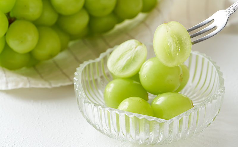 とっても甘くて、皮ごと食べられ、種がない。今大人気のシャインマスカット!