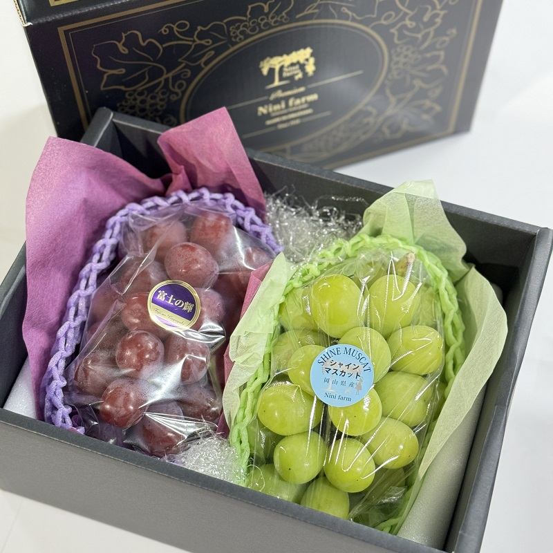ぶどう 2026年 先行予約 話題の品種 富士の輝&こだわりのシャインマスカット 贈答ランク 合計約1.2kg ブドウ 葡萄 岡山県産 国産 フルーツ 果物 ギフト 【 Nini farm 農家 直送 】