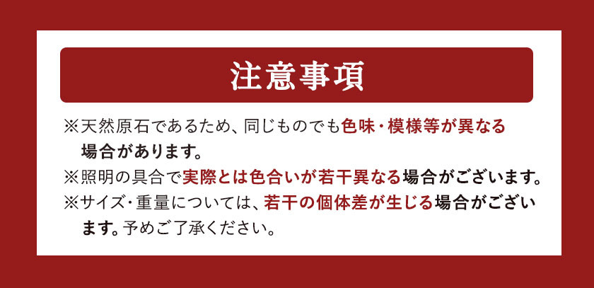 ※天然原石であるため、同じものでも色味・模様等が異なる 場合があります。