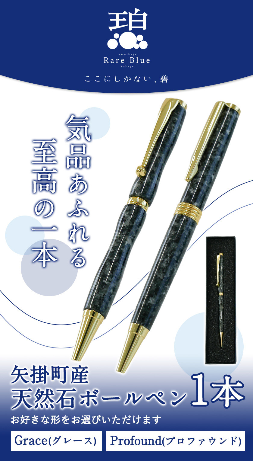 気品あふれる至高の一本「天然石ボールペン」 矢掛町産天然石ボールペン 1本 Grace(グレース)またはProfound(プロファウンド)《受注制作のため最大3か月以内に出荷予定》 備中青みかげ ボールペン 小野石材工業株式会社 Rare Blue(レアブルー)