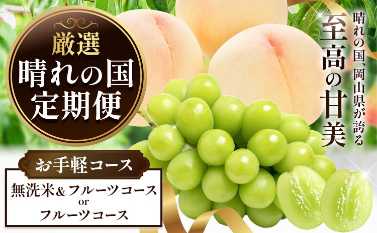 晴れの国、岡山県が誇る至高の甘美。 晴れの国からお届け! 晴れの国 定期便 選べる お手軽コース シャインマスカット 桃 米 フルーツ ふるさと納税 定期便 米 無洗米 5kg フルーツ 定期
