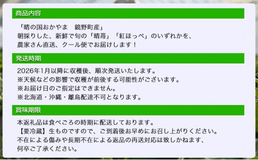 ・出荷時期:2026年1月下旬~3月下旬を予定しております。