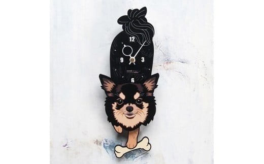 手に持つものを15種類から選べる!手の部分が振り子になった壁掛け時計 チワワ白黒-犬の振り子時計 C-CD-049A