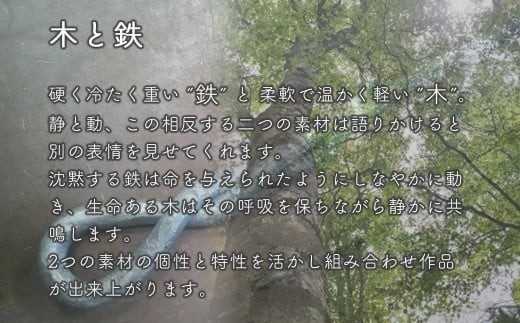 沈黙する鉄は命を与えられたかのようにしなやかに動き、生命ある木はその呼吸を保ちながら静かに共鳴します。