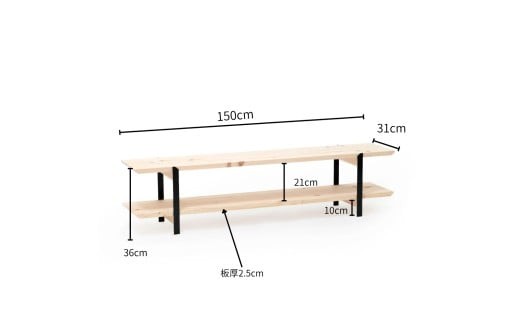 | 容量 | ・サイズ 幅150cm×奥行31cm程度×高さ36cm、棚板厚み2.5cm ・素材 天板:ひのき接板(無塗装、節あり)、脚:スチール(焼付塗装)×ひのき無垢材(無塗装、節あり) ※kinariは木のそのままの姿を大事にした商品です。穴の開いた節やヤニが混ざることもございますが、自然の風合いとしてお楽しみください。 ・重量 およそ13.5kg/台 ・付属 L型六角レンチ、六角ネジ ※お客さまに開梱・組み立てしていただく製品です。 ・備考 素材の特性上、木部にはヤニや反りなどが発生することがあります。自然の風合いとしてご了承ください。(強度など使用上は問題ありません) |