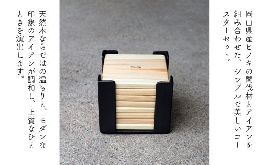 岡山県産ヒノキ×アイアン|こだわりのコースターセット(8枚組…