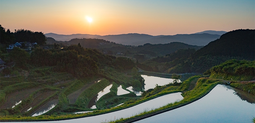 久米南町は岡山県のほぼ中央に位置し、町の中央を南北に国道とJRが通り、県内外へのアクセスの良い町です。人口約5,000人の小さな町ですが、主要産業である農業は、米作りやぶどう作りが盛んで、町内2か所にある棚田は日本の棚田遺産に認定されています。
