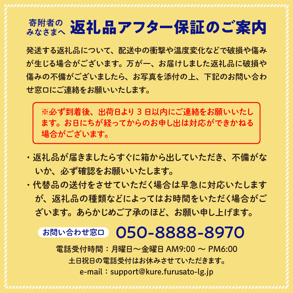 万が一不良品がございましたら出荷日より3日以内にご連絡ください。お日にちが経ってからのお申し出は対応しかねる場合がございます。