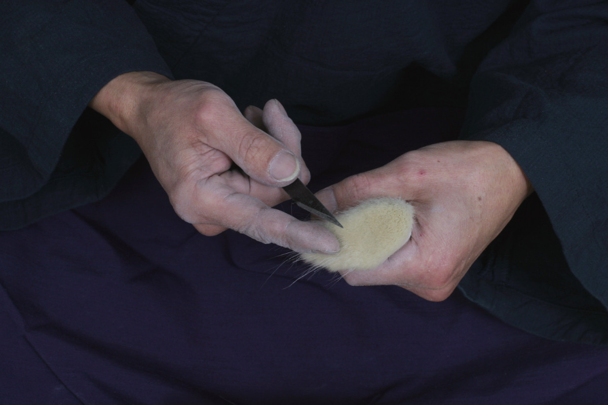 丹念な手しごとによって穂先を作り上げ、1本の筆を作り上げます。