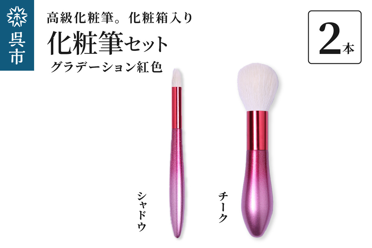 吸い付くような、なめらかな肌触り 最高級化粧筆 古羊毛 花 グラデーション紅色 2本セット(チーク/シャドウ)