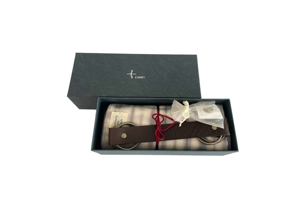 | 容量 | ふろしきハンド:ベルトタイプ本ナメシ牛革(栃木レザー 約2.8cm×28cm)、リング内径40mm ふろしき(たぐり寄せ染め):綿100%(帆布79号)、草木染め(約88cm角) スナップピアス:真鍮、鉄、マグネット(約1.8cmφ×2cm) 化粧箱入り |