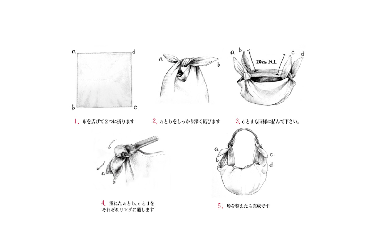 ふろしきだけでなく、お気に入りの布や家族の思い出の布を使うこともできるので、その日の服装や気分によってコーディネートを楽しめます。
