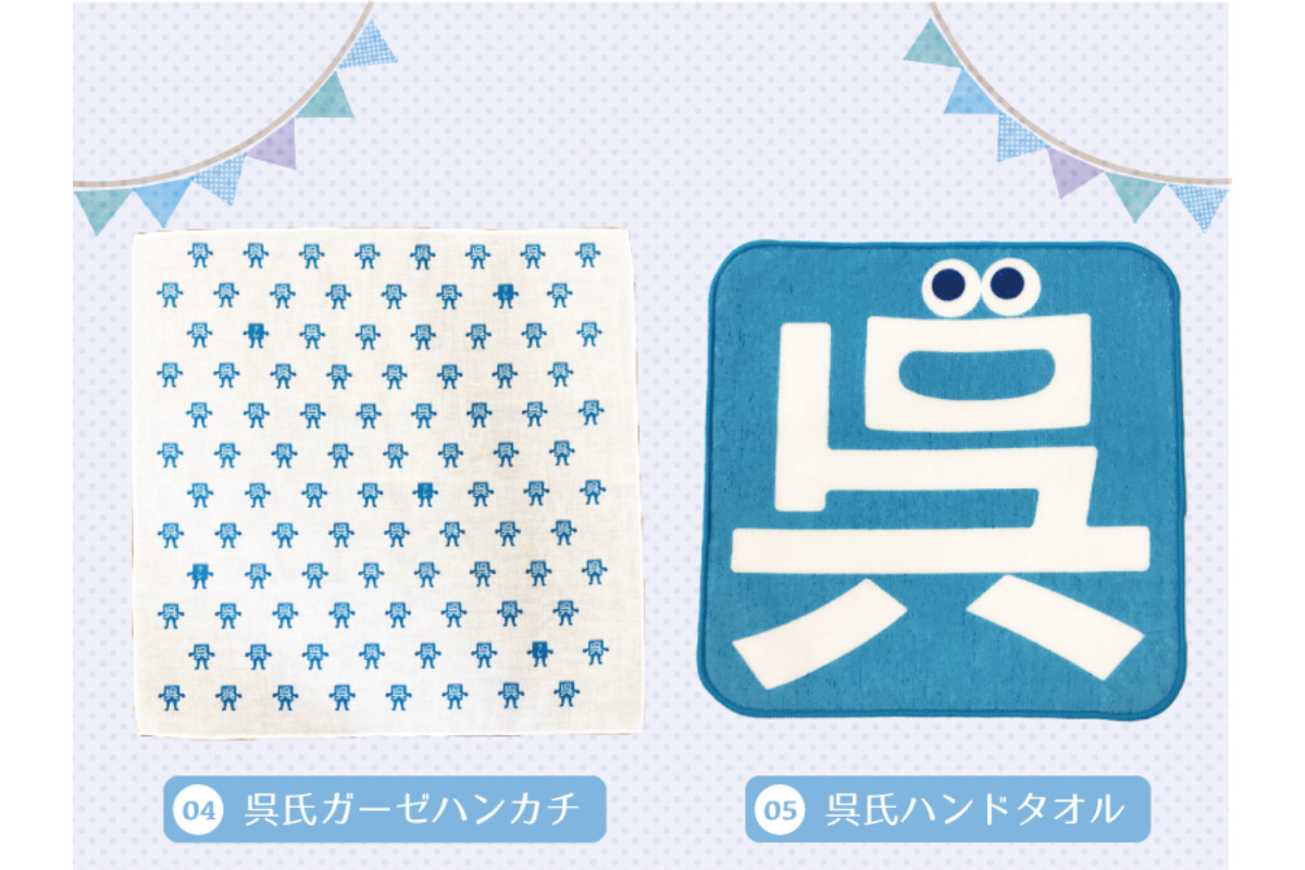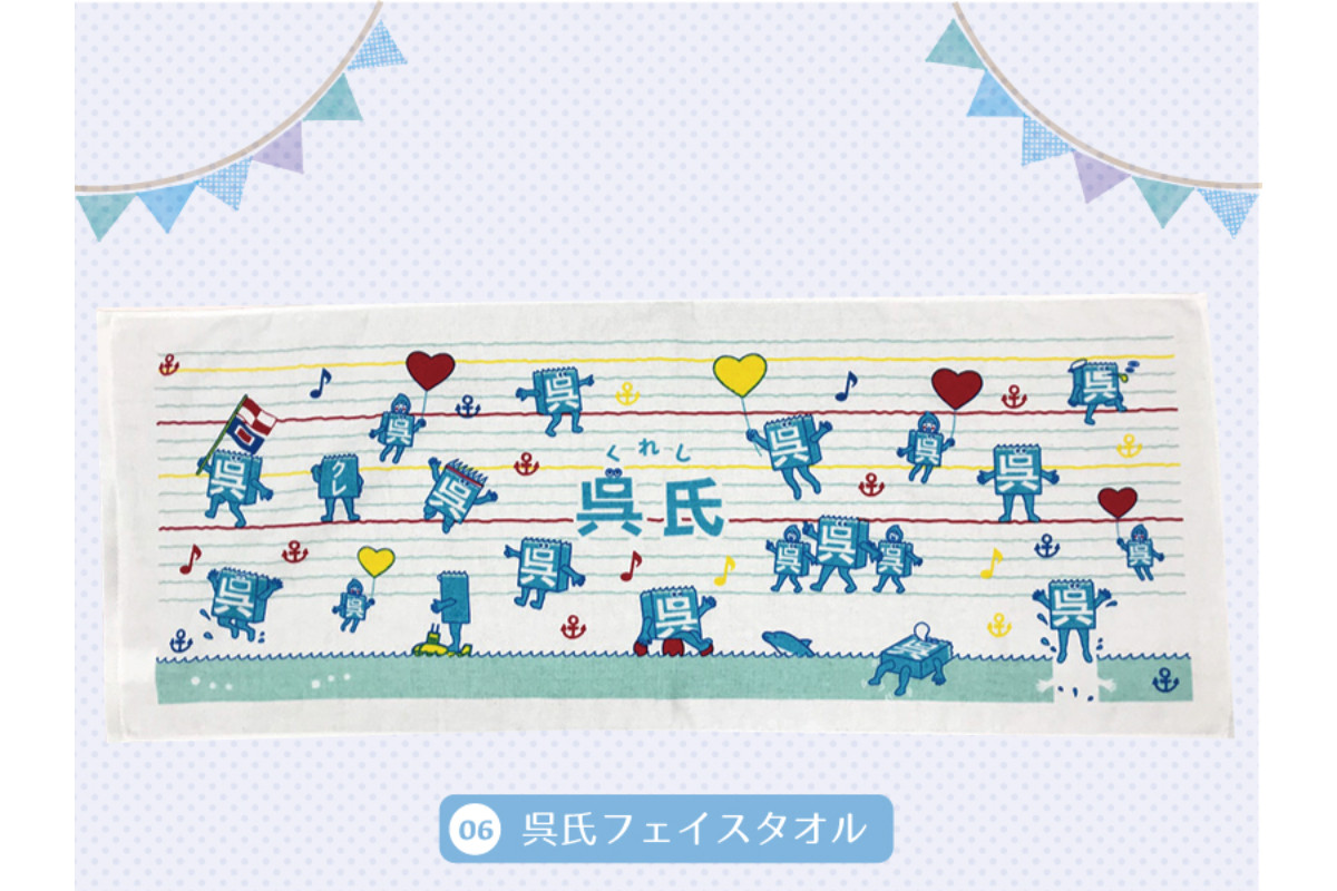 呉氏の世界観が表現されたマリンテイストのフェイスタオル。