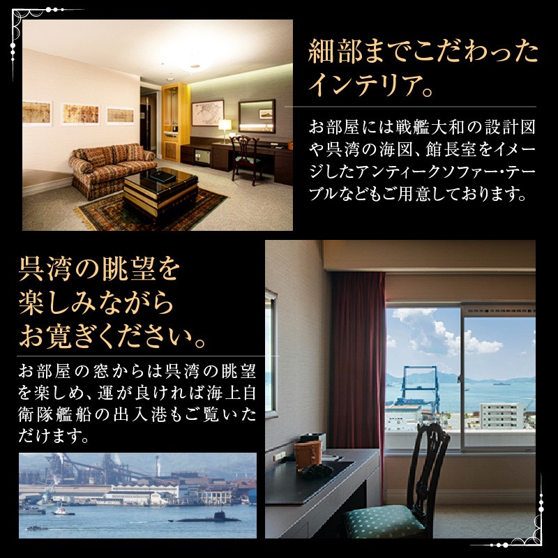 戦艦大和をイメージした客室に宿泊! クレイトンベイホテル 大和ルーム ご宿泊券(お1人様 1泊朝食付) 広島県 呉市 ku109-001-r