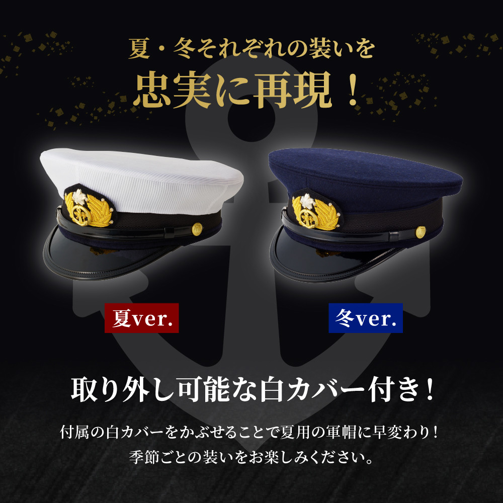 大正2年創業の帽子専門店がお届け 海軍軍帽 士官帽(白カバー付き) 57cm 旧帝國海軍 ミリタリーグッズ 夏用 冬用 職人技 レプリカ 高田帽子店 広島県 呉市 送料無料
