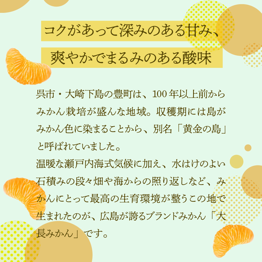 呉市・大崎下島豊町で丁寧に育てられた「大長みかん」。