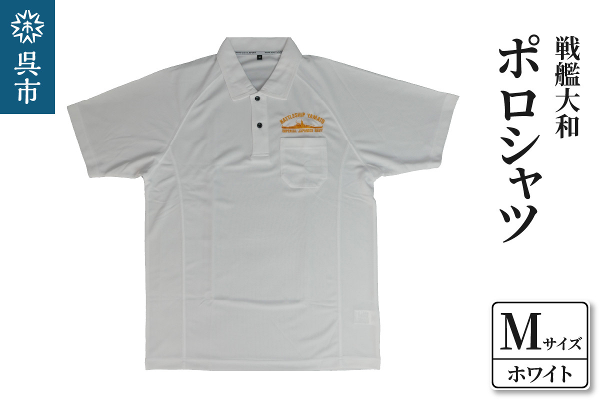 ドライ生地だから着心地よし! ポロシャツ【戦艦大和】ホワイト Mサイズ