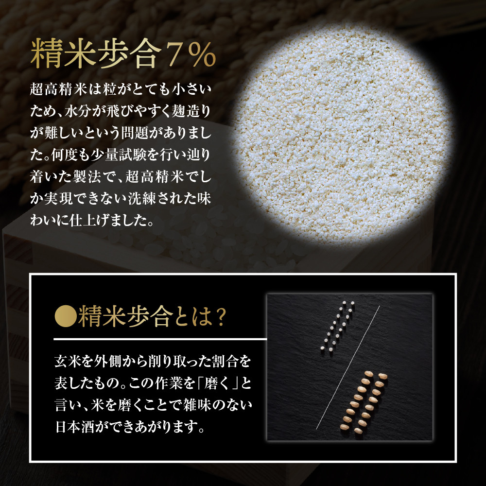 | 容量 | 内容量:720ml 精米歩合:7% アルコール分:16% |