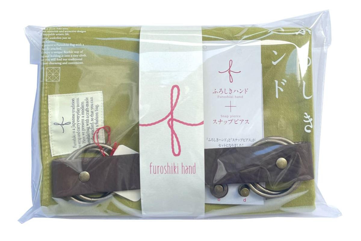 こちらのお品は、「ふろしきハンド」に「帆布ふろしき(88cm角)」と「スナップピアス」をセットにしたもので、ふろしきバッグとしてご使用いただけます。