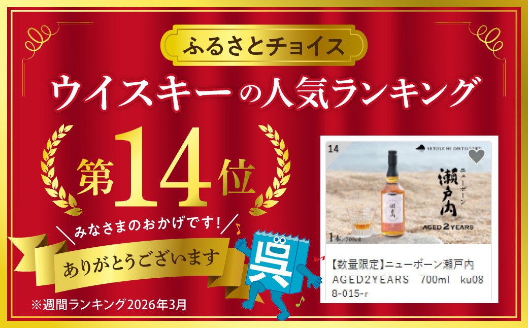 瀬戸内の自然の息遣いを感じられる唯一無二のウイスキー 【数量限定】ニューボーン瀬戸内 AGED2YEARS 700ml ku088-015-r